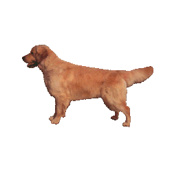 Golden Retrievers have friendly, intelligent facial expressions with light brown, deeply set eyes and black or brown noses. Their ears are of medium length and carried close to the head. Tails are characteristically fluffy, carried with pride but never excessively curved over the back.
